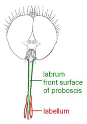 Labellae of proboscis long and slender, very shorthaired, the hairs not so long as labellae are wide. Labrum at least one and a half times longer than head is deep. No bristle in 'comb' at tip of hind tibiae behind.