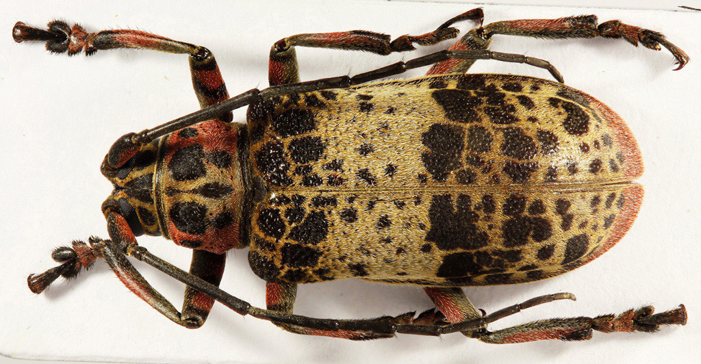 Per aprire la serie delle raccolte nella recente spedizione gabonese, non potevo non scegliere un cerambicide. In assoluto mi pare che fosse la famiglia di coleotteri più rappresentata, sia di giorno in foresta sia di notte ai teli. Mi pare di averne raccolti due esemplari, uno passato a Jean-Philippe Roguet, specialista di Lamiinae, compagno di cacce quest'anno, questo pronto per Carlo (che aveva già proposto sul forum un esemplare dello stesso genere tempo fa, proveniente dal Togo).