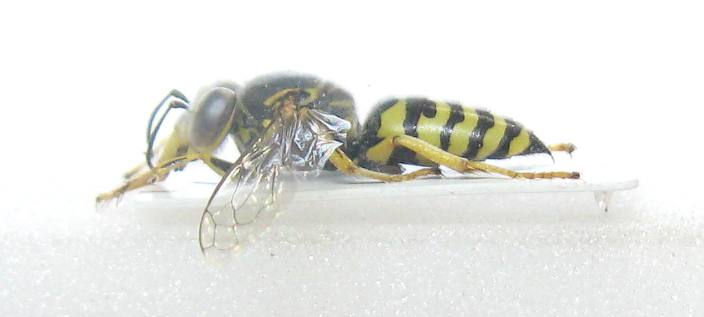 è oculata. Le ali, negli imenotteri in generale è bene siano allungate e divaricate ai lati dell'addome, sì da consentire in foto di valutare la venulazione ma anche le mesopleure che in tale specie (qui in norma laterale non sono visibili), dovrebbero essere nere (o con piccolissime macchie gialle).