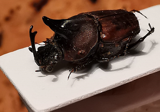 Credo che la forma delle corna di questo maschio parli da sé, ma la cosa più sorprendente è che il corno clipeale non è una "semplice" escrescenza del capo: è articolato!