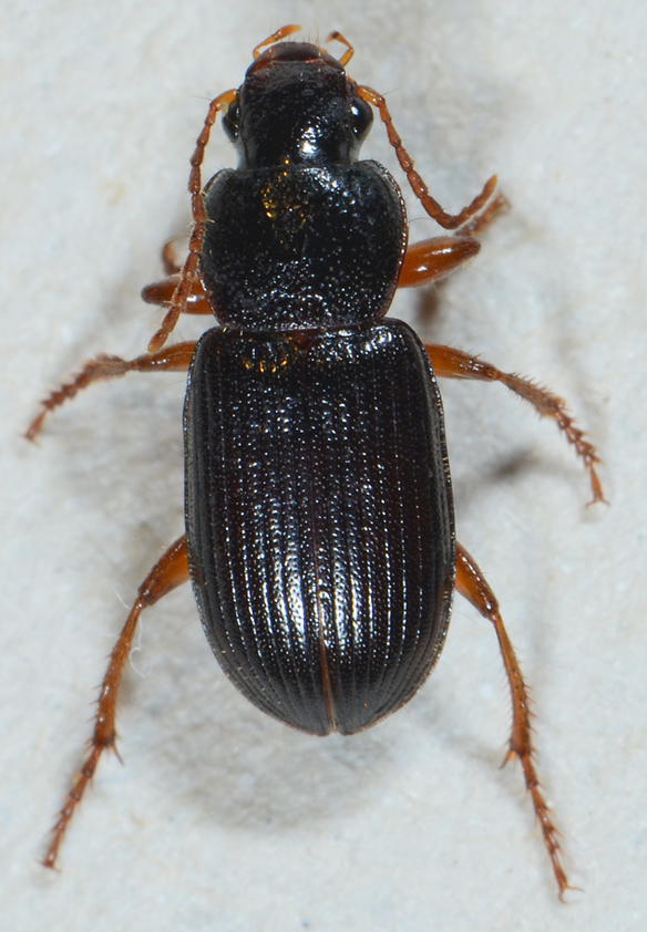 Sarebbe interessante il fatto che fossero più di 2 specie, vorrebbe dire che le lampadine della mia terrazza di Sassari hanno un potenziale attrattivo per gli Harpalinae degno di essere sfruttato specificatamente. Tanto più che c'era anche un'altra specie di carabidae, piccolissimo, pochi mm, questo molto diverso dagli altri, che posterò in una discussione distinta. Comunque si può verificare, dei piccoli ne ho presi due, questo è il secondo: