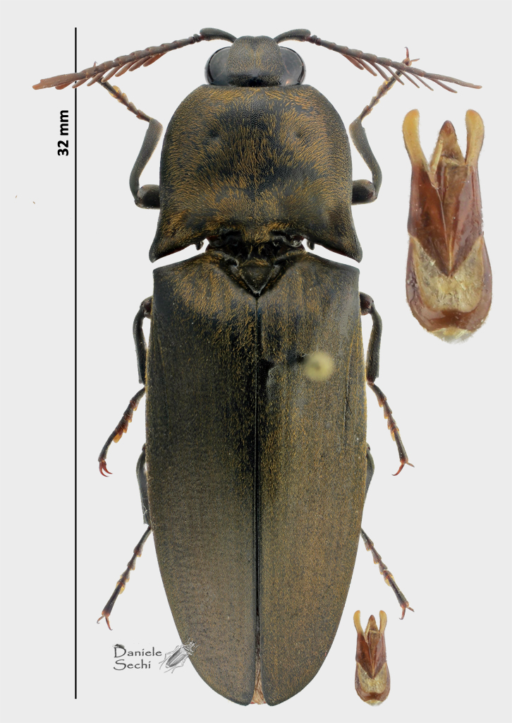 Altra specie di Tetralobus, più piccola del precedente e dall'aspetto più scuro e allungato. Ne ho raccolto 2 esemplari, maschi di dimensioni simili. E con questa specie termino la breve carrellata di Elateridae gabonesi.