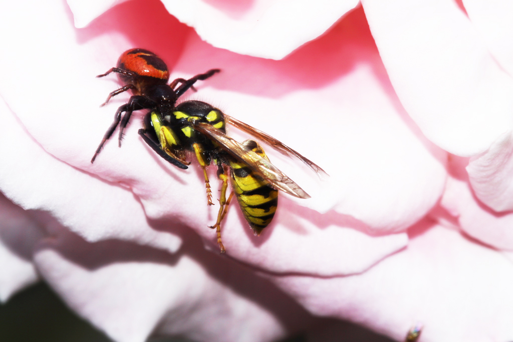 Synaema globosum (Fabricius, 1775) -Thomisidae; preda: Vespula germanica (Fabricius, 1793) - Vespidae