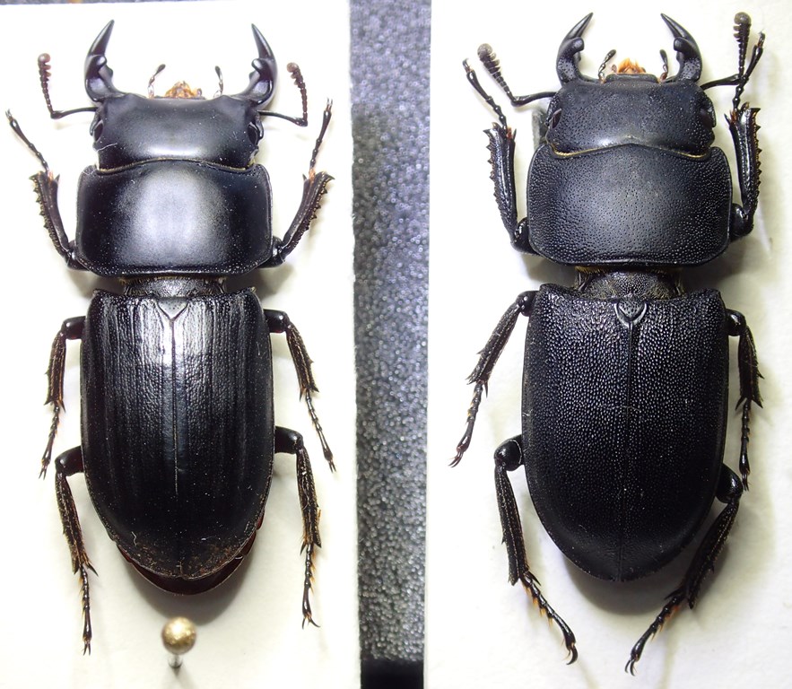 i due maschi delle specie in questione: a sx un musimon, a dx paralleipipedus. Per le femmine l'aspetto è molto diverso fra loro, perchè la femmina del musimon è lucida e fortemente puntata sulle elitre.