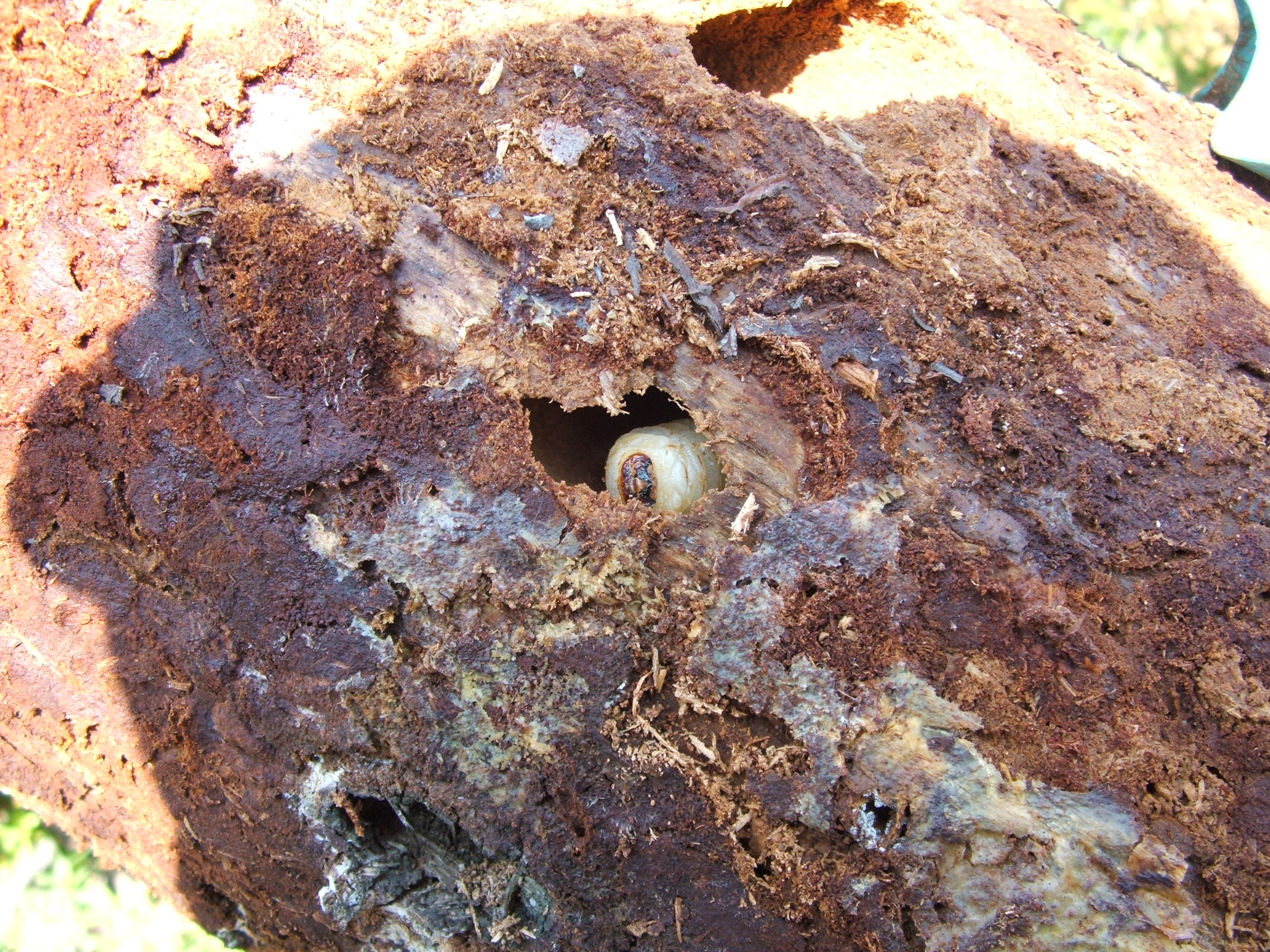 Non saprei... stasera ho alzato la corteccia e sotto, "sdraiata" nella rosura, c'era la pupa.
