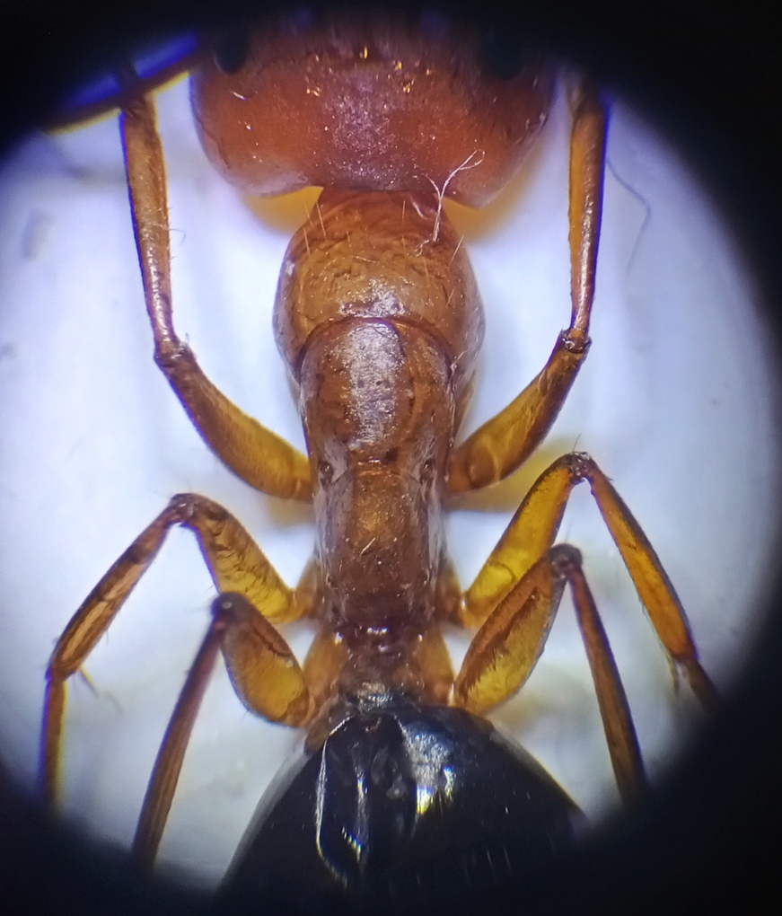 Yes, the head and mesosoma have the same colour. Before drying the color was even lighter.