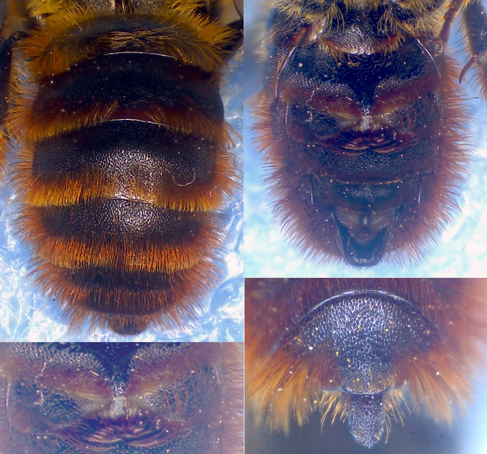 Nell'ultima foto del secondo mosaico si vedono chiaramente 3 pollinii di orchiidea adesi alla faccia del soggetto, inequivabile espressione di pregresse pseudocopulazione con almeno due diffrenti orchidee.