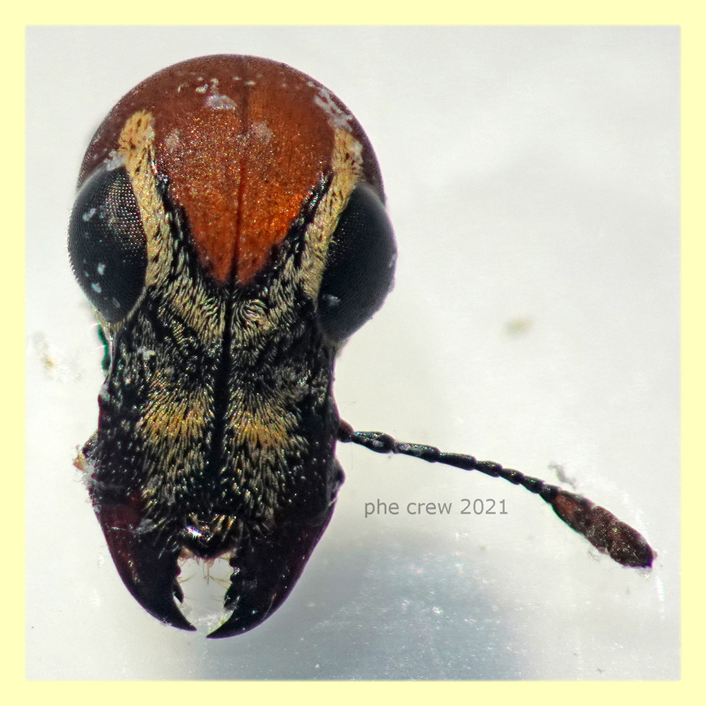 ...mentre stavo togliendo il ciuffo di un Ananas provenienza Costa Rica tra le foglie scorsi qualcosa...e quasi non ci credevo quando mi si presenta una testa secca di Anthribidae !!! :shock: :roll: :shock: :roll: . La sua misura è di 2,5 mm. Ho cercato anche il corpo ma non l'ho trovato...forse non l'ho visto o mi si è sgretolato. Si riesce ad andare oltre solo da queste foto ?
