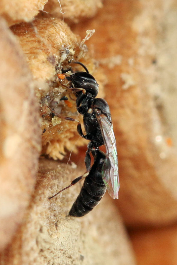 Vi chiedo aiuto per l'identificazione di questo imenottero osservato su uno dei miei "hotel per api". Potrebbe eventualmente trattarsi di Hylaeus sp.? Non ho però trovato immagini di questo genere con testa scura e mandibole bianche. :roll: