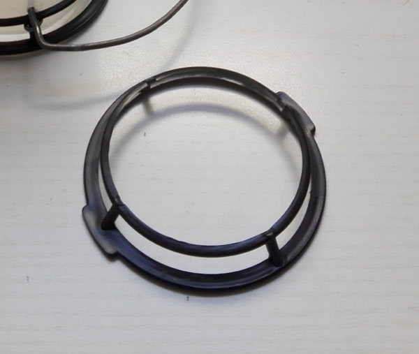 3. Se si vuole seguire il mio progetto, si tagliano con delle forbici gli anelli della griglia nera di protezione, lasciando intatti gli ultimi due (il penultimo servirà per l'incastro del contenitore).