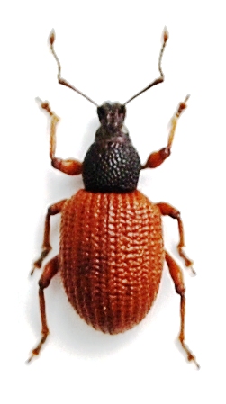 Si vede che è un Otiorhynchus rugostriatus immaturo. Oppure ha esagerato con la vite, visto che se la mangia, e si è ubriacato! :mrgreen: