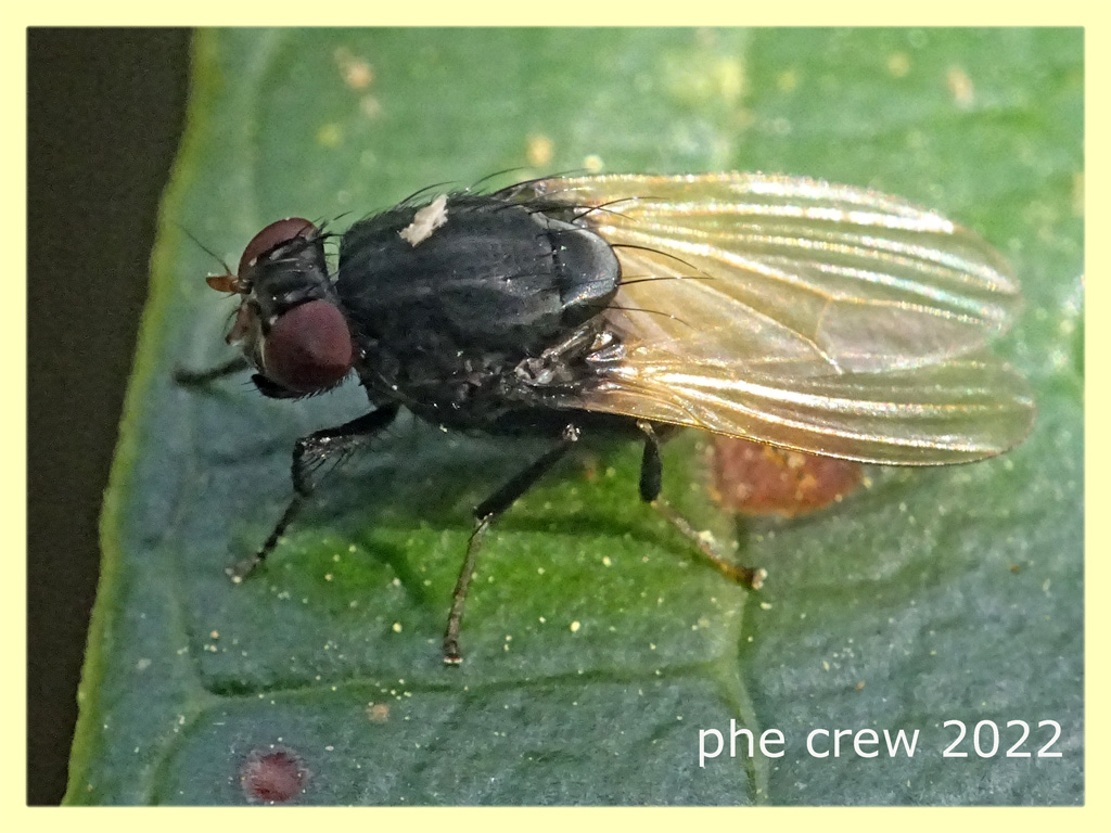 ...anche io ho potuto fare una sola foto a questo Dittero che appena si e' posato mi ha colpito la sfumatura nera all' attacco delle ali….e mentre mi accingevo a fargli altre foto e' subito volato via. Sembrerebbe Minettia longipennis, forse da questa foto leggermente piu' dettagliata si riesce a capire qualcosa. :hi:
