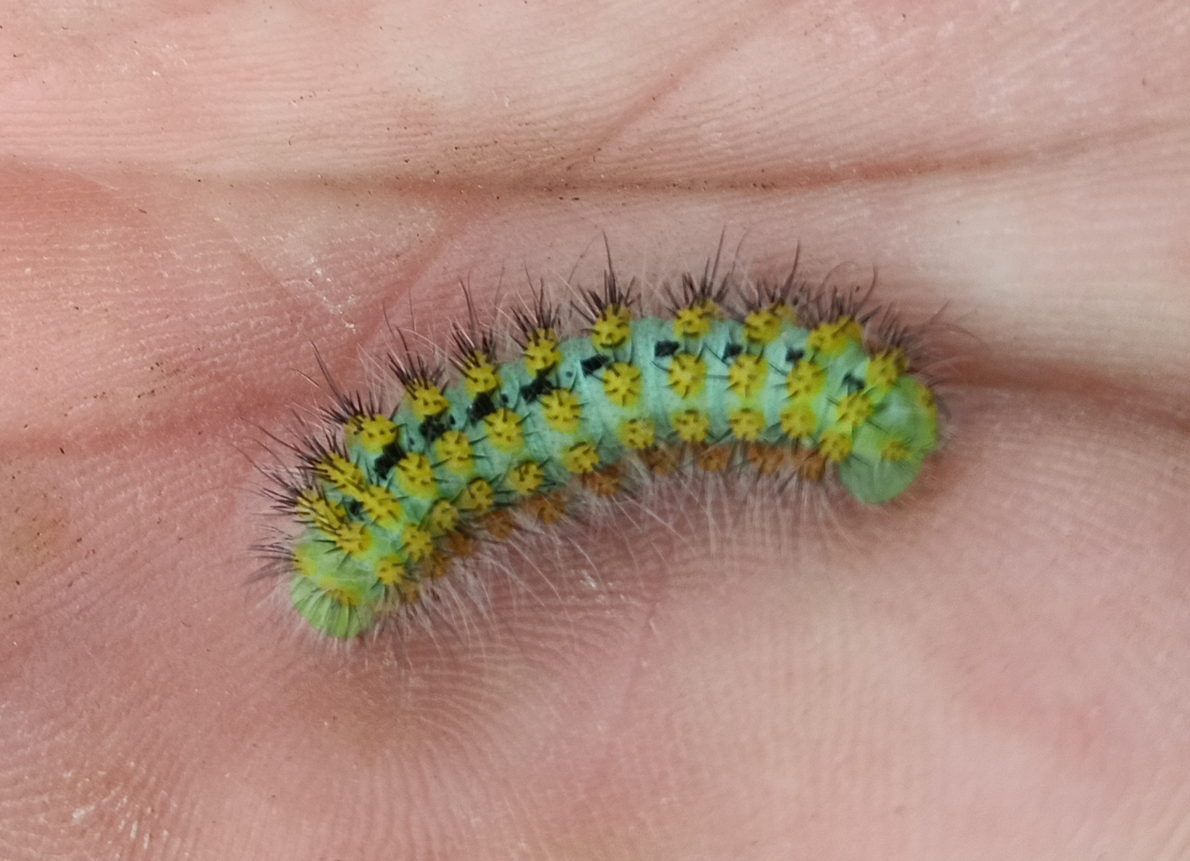 Uno mi era rimasto avvinghiato ai calzoni senza accorgermi così l'ho portato a casa e lo sto nutrendo con olmo. È mutato.