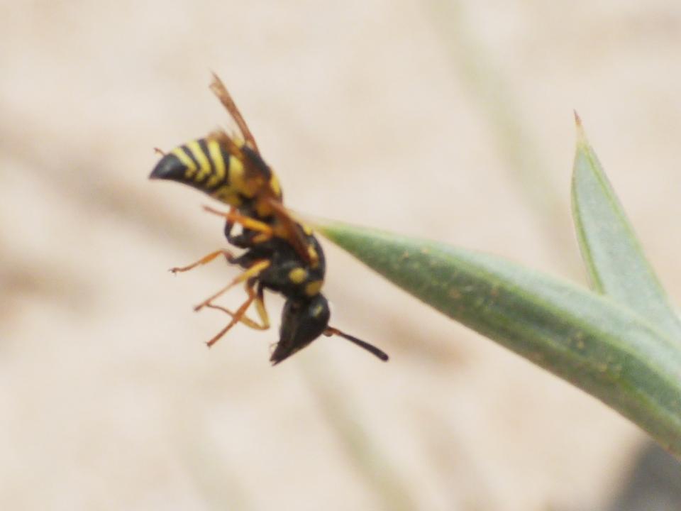 Ho ritrovato una brutta foto che rappresenta un Vespidae Eumeninae infilzato im una spina di Echinophora spinosa, e che si liberò da solo dopo qualche decina di secondi.