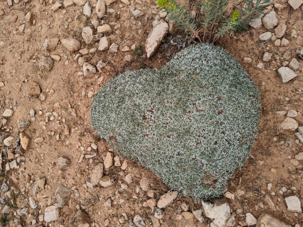Arriviamo a una vallecola arida, con un fondovalle scosceso e una strada bianca dissestata che segue una sorta di piccolo canyon, profondo al massimo due o tre metri, scavato dall’acqua nella terra compatta. Non troviamo quasi nulla, ma l’habitat è decisamente magnifico. Ginepri secolari arroccati nelle zone più sassose, cespugli non meglio identificati e piccole piante di Euphorbia giallissime.