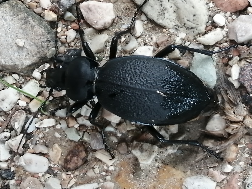 Un carabo enorme, sui 4 cm, con un addome "gonfio": forse femmina di Carabus coriaceus?