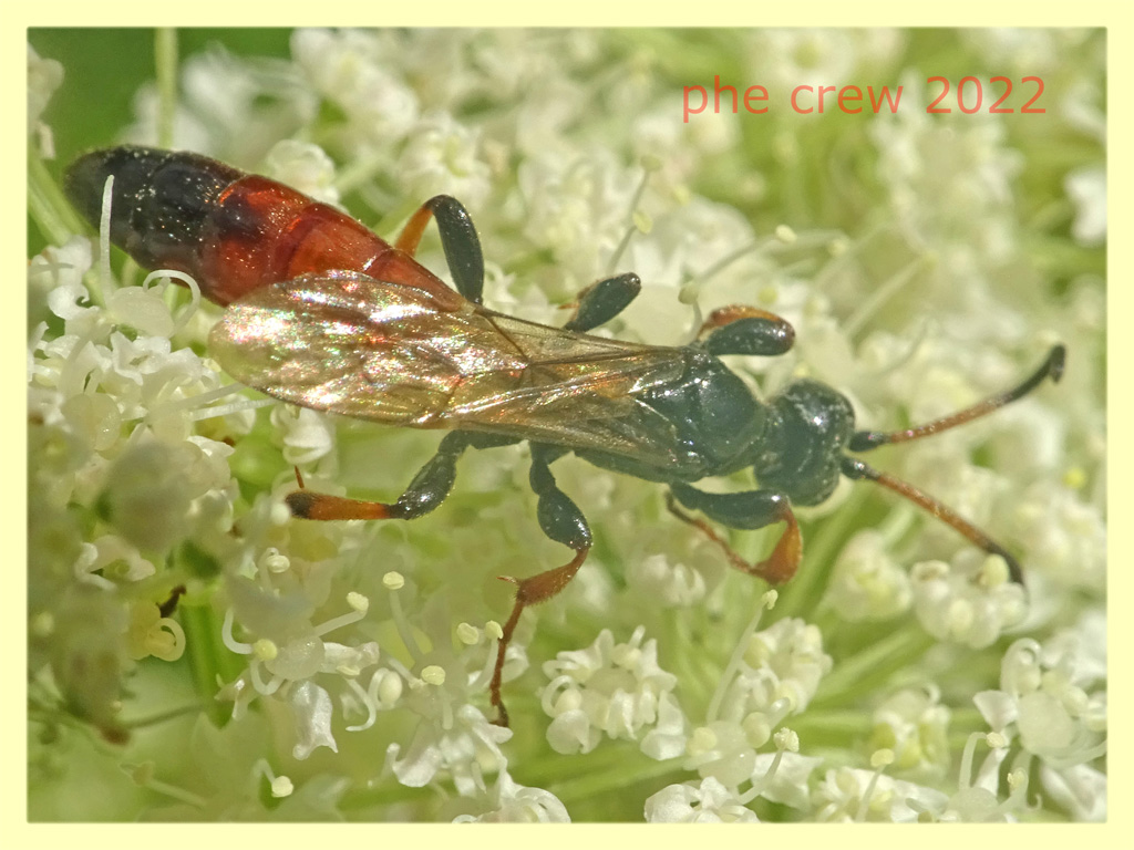 ...arrivo a Ichneumonidae Ichneumoninae, sulle infiorescenze si muoveva stranissimo con quelle zampe "raptatorie" sembrava stesse scavando un tunnel. Purtroppo queste le uniche foto.