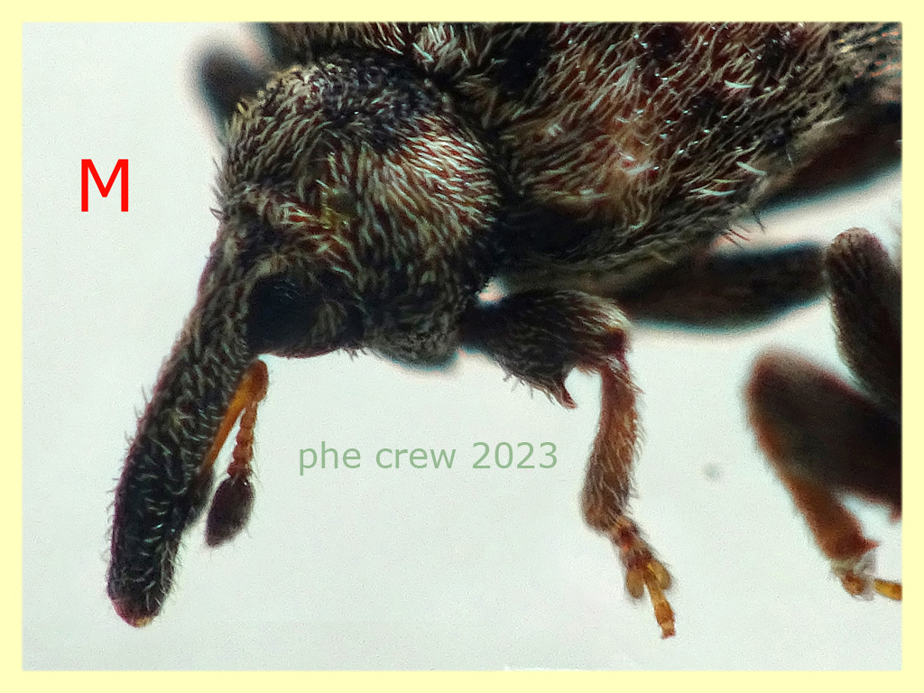 ...riposto questo bel Curculionidae gia' determinato qua sul forum perché ho trovato una coppietta. Maschio (M) e femmina (F) di Cleopus solani...cosi' si possono notare le differenze.