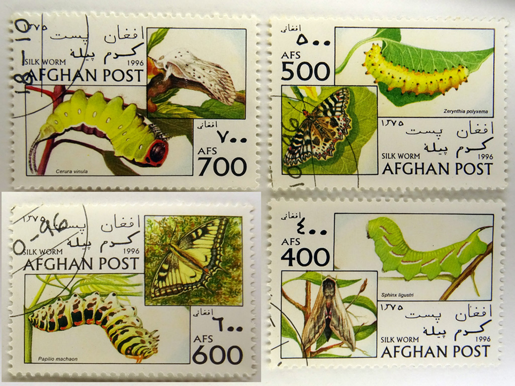 Afghanistan: Cerura vinula, Zerynthia polyxema (notare la M al posto della N), Papilio machaon, Sphinx ligustri