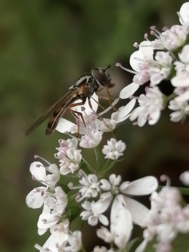 Molto piccolo, tiene le ali ripiegate sull'addome mentre si alimenta. Le ali mi sono sembrate lunghe rispetto al corpo e dai riflessi dorati/ramati. Era su fiori di coriandolo. Altro non vi so dire