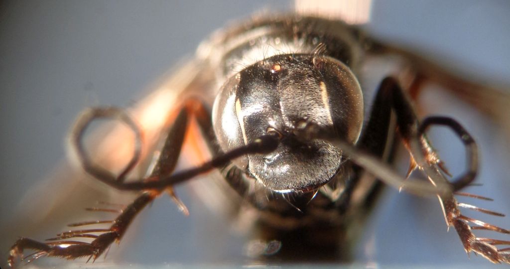 Specie che pare mancare dal Forum; un paio di femmine osservate: questa è di mm 11. L'avevo già trovata a Foce del Belice, in Sicilia. Genere subito riconoscibile per i peli bianchi squamiformi sul propodeo e metanoto; il gastro ha tre terga maculati di bianco (2,3 e 6).