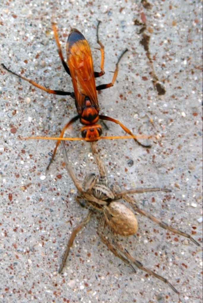Quello invece predato dal Pompilidae è sempre un Lycosidae. Genere Hogna.