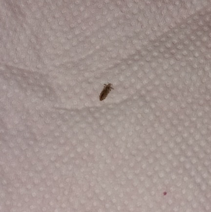 Questo insetto morto. Sarà 3/4 mm, ben visibile a occhio nudo...Mi sembra un pidocchio del capo ma nessuno di joi li ha. Mia figlia 9 anni l'ho guardata ciocca per ciocca e non ha lendini o pidocchi.