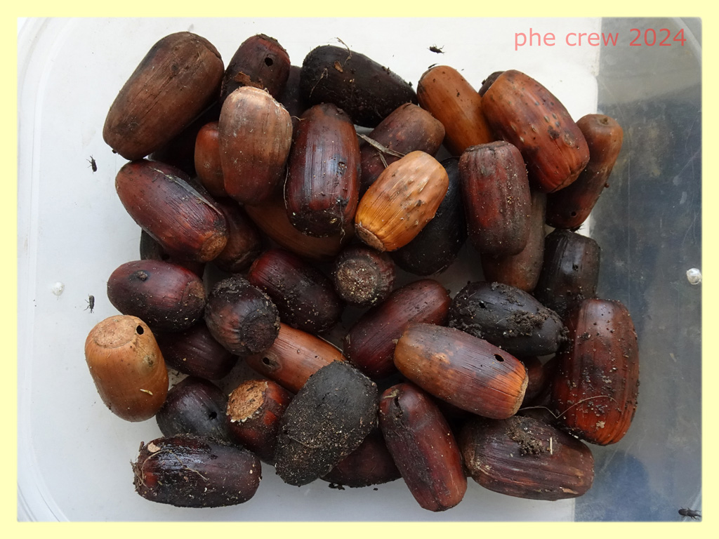 ...aspettando che esca qualcosa di serio da delle Ghiande prese alla base di una Quercia....mi sono gia' usciti 6 esemplari dei soliti Oryzaephilus surinamensis (oltre ad una ventina di Sitophilus zeamais :rey )...ma due di questi hanno le corna. Cercando sul web dovrebbero essere la forma bicornis. Ne posto uno di 3,5 mm. e la foto delle Ghiande. :hi: