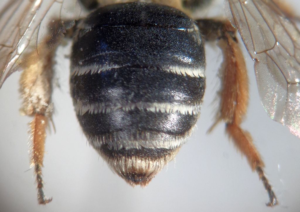 Andrena? Unico esemplare, sulla duna. Scultura del torace poco diversificata; propodeo punteggiato su fondo microsculturato, con triangolo dorsale basalmente debolmente striato; pigidio arrotondato, con fini punti. Se serve altro, specificare. :)