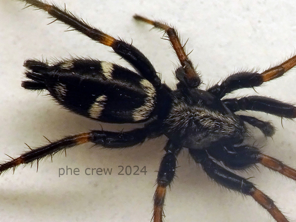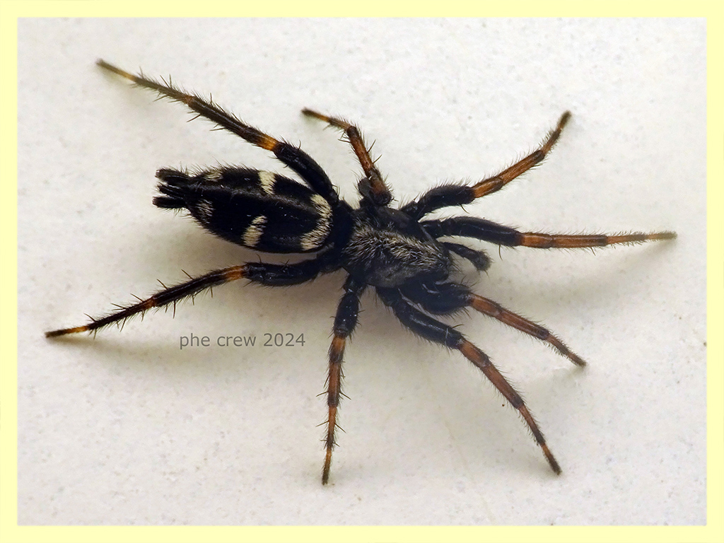 ...presenta due macchie vicino le filiere che A. trifasciata non ha, quindi Aphantaulax cincta.