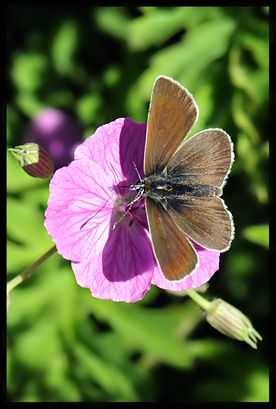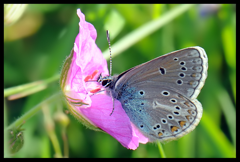 Lungo questo sentiero, posata su un fiore di Geranium sp., pianta alimentare dei suoi stadi preimmaginali, ho incontrato una bella femmina di Plebejus (Aricia) eumedon (Esper, 1780) (= Eumedonia eumedon) :)