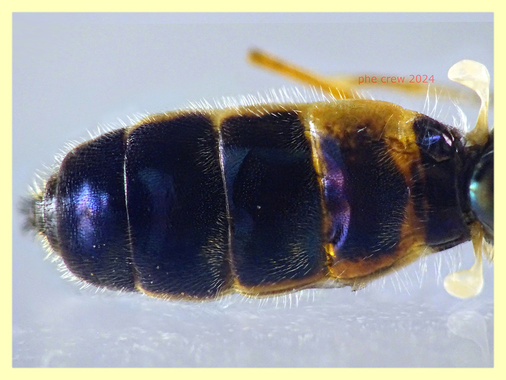 ...i primi due tergiti sono arancio, ma credo che la macchia metallica puo' variare in grandezza (foto gia' postate sopra) e che sarebbe una caratteristica solo della femmina di S. bipunctatus cosi' come le coxe di color arancio...