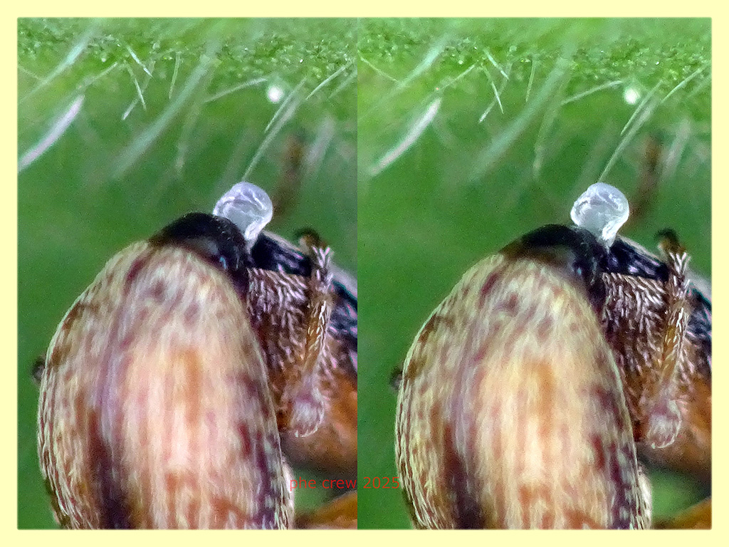 ....in questa coppietta sotto al led, mentre si dava da fare :D ....ho notato che alla femmina fuoriusciva una cosa bianca da dietro. All' inizio sembrava qualche sacca per raccogliere l' edeago....ma l' edeago e' gia inserito piu' sopra !...la cosa strana e' che poi quella sacca gli cadde.....cos'e' un escremento :? ...non sono riuscito a capire...