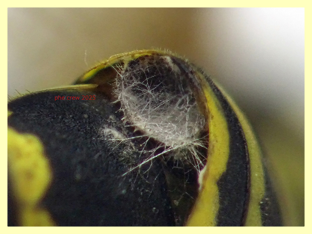 . Mi accorsi solo dopo aver fatto delle foto che aveva un broblema all' apparato boccale. Riusciva ad aprire solo la mandibola destra e teneva sempre fuori la "lingua" .....Purtroppo le foto sono fatte attraverso una scatolina trasparente e non sono un granche', ho potuto fotografare solo la faccia che era piu' vicina, la parte da sopra, pronoto e addome....specialmente l' addome dove e' lo Strepsiptera, non l' ho potuto fotografare perche' troppo distante e sarebbe venuto sfuocato. Approfitto quindi di questo post per chiedervi se a qualcuno di voi e' andato a buon fine un allevamento di Strepsiptera...e qualche consiglio ovviamente.