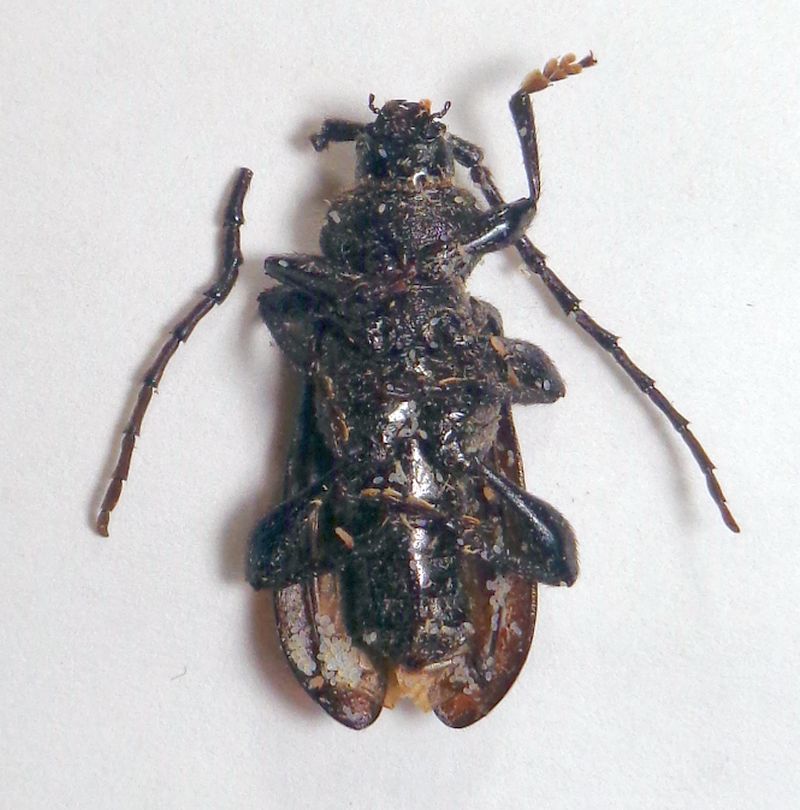 Ogni tanto un amico romagnolo mi dona alcune specie che recupera in ricerche entomologiche: il cerambice è stato raccolto in trappole aeree poste nella foresta "Campigna" nel luglio 2025; in una "bustina" con tre esemplari di Ropalopus ungaricus (Herbst, 1784) vi era questo, che più degli altri sembrava aver attirato gli psocotteri adulti, visto che su di esso si concentrava l'ovideposizione, con decine e decine di ovetti bianchi di 0,35 mm ca. contro il millimetro degli adulti.; inoltre era quello che è risultato più danneggiato da rotture delle membrane. Le foto sono fatte sullo scottex che corredava la bustina, dopo che questa era passata in congelatore per qualche giorno. Sulla specie del Liposcelis non saprei.