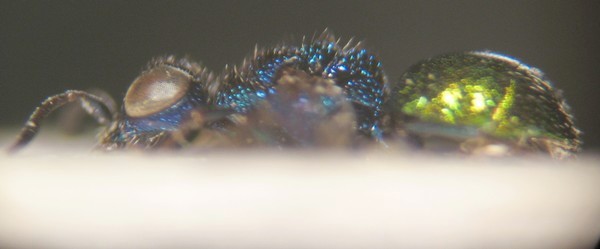 dalla punteggiatura dello scutum non sembra uno Pseudomalus, direi invece un Philoctetes; se guardi la punteggiatura dell'area mediana dello scutum vedi che nello Ps. auratus ci sono dei grossi punti raggruppati nella parte posteriore, a ridosso dello scutello, mentre qui ce ne sono alcuni allineati lungo i notauli, cioè i solchi che separano l'area mediana dalle laterali