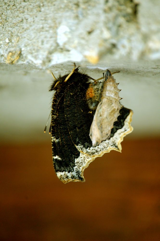 Nymphalis antiopa (Linnaeus, 1758) pupa - Nymphalidae - Cantone Ticino (Svizzera)