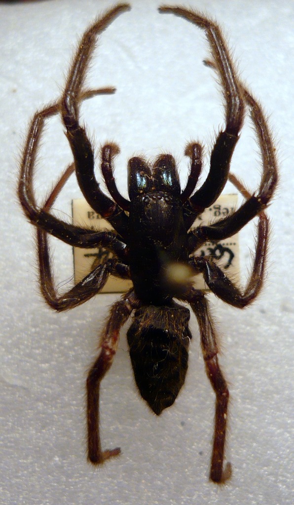 Posso darti un consiglio? I ragni spillati son veramente brutti e praticamente inutili. Infatti per osservare le piccolissime strutture del palpo, o la vulva nelle femmine adulte, occorre un animale che non sia secco, e quindi non abbia rovinati tali caratteri diagnostici. Come ben vedi gli esemplari secchi presentano un notevole deterioramento di tutte le parti molli, come l'addome che si rattrappisce diventando duro e fragile. E' sempre preferibile conservarli in soluzione alcolica al 75/80%