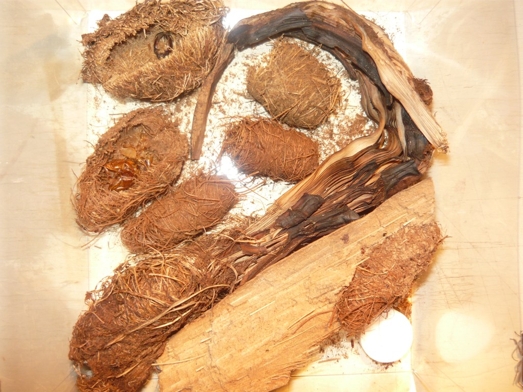 Ho scoperto tutto il clan che si era inserito in un "tentativo di diorama" fatto con delle cellette pupali di Rynchophorus. Inutile dire che mi hanno disfatto completamente una pupa secca,ma perfetta, e una larva che però non era un granchè.