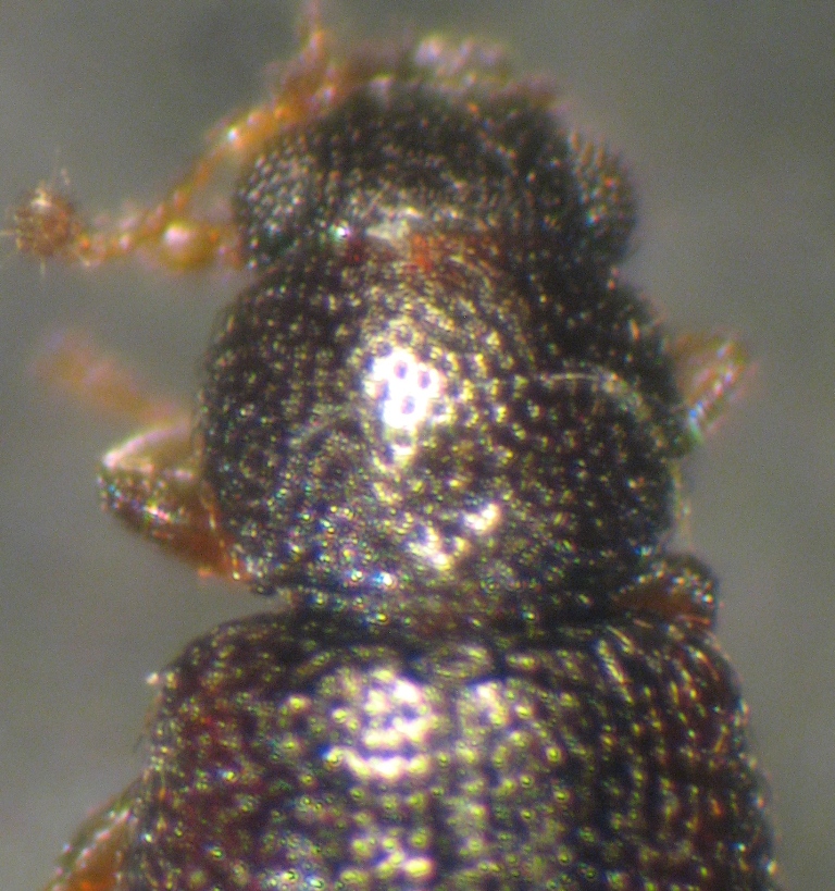 La fossetta sul pronoto è tipica dei generi Corticaria, Corticarina e Cortinicara.
