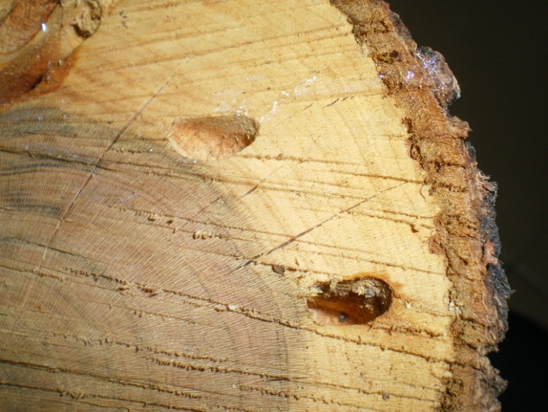In particolare avevo addocchiato un grosso ramo con diametro sui 9cm... guardo bene e vedo la testa di una larva di Cerambice!!!! :hp: :hp: :hp: