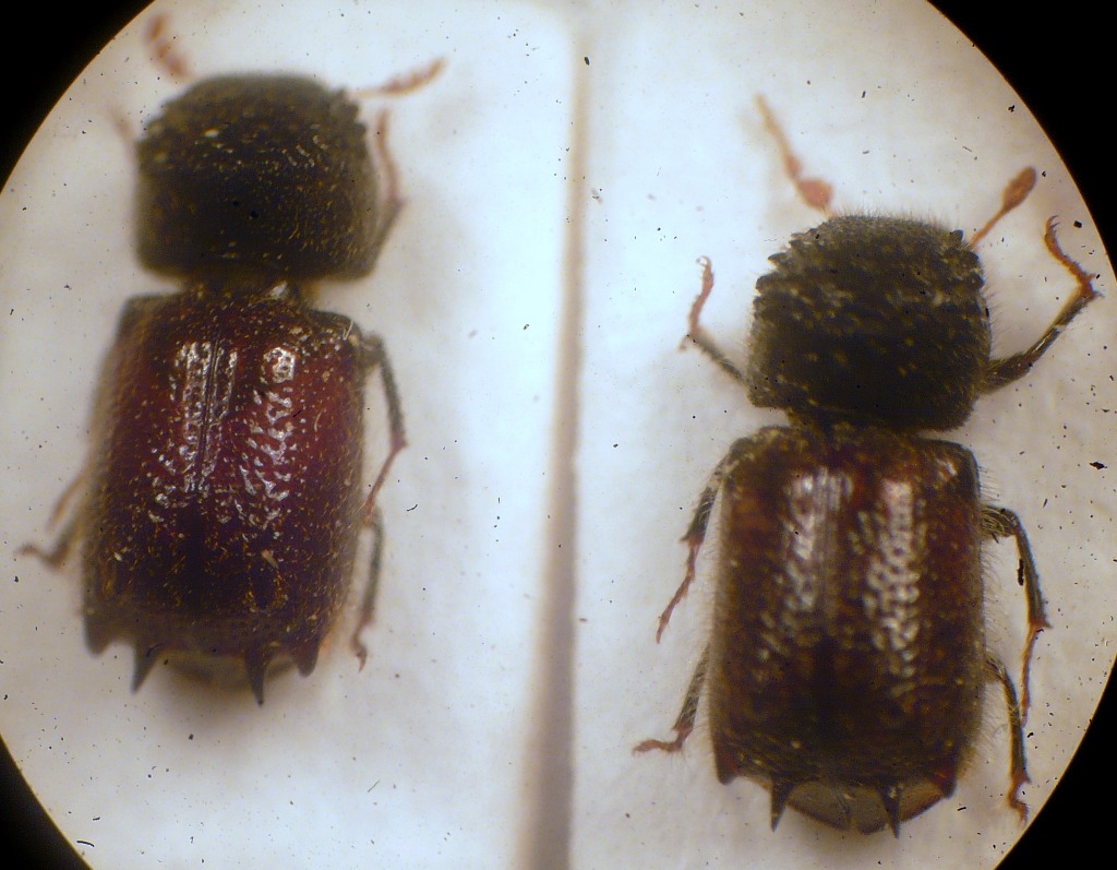 La larva sicuramente non c'entra nulla coi Sinoxylon, che dovrebbero avere la solita larva tipo Bostrichidae, corta, tozza, ripiegata a C o a J, vagamente simile a quella di uno scarabeide, ma con la parte anteriore molto ingrossata.