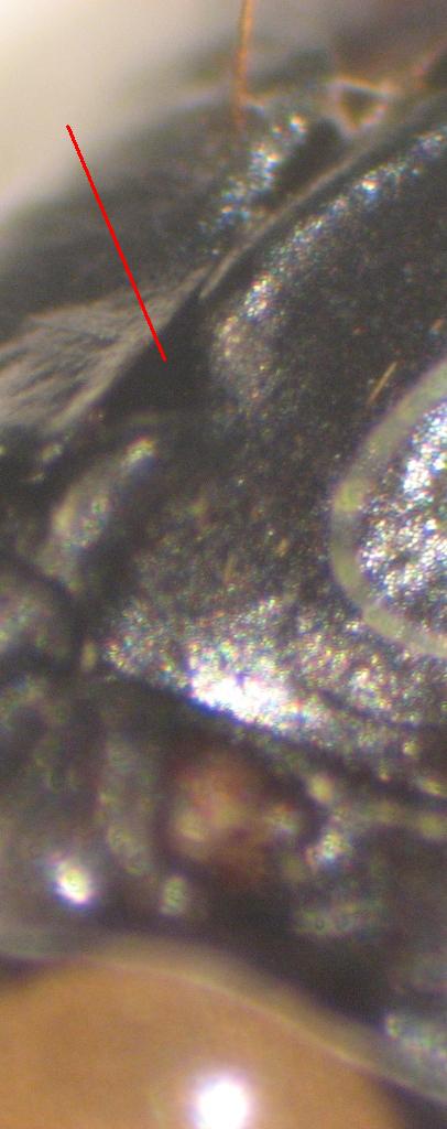 Verifica se è presente una netta intaccatura sul lato esterno della mandibola destra (verso la base).