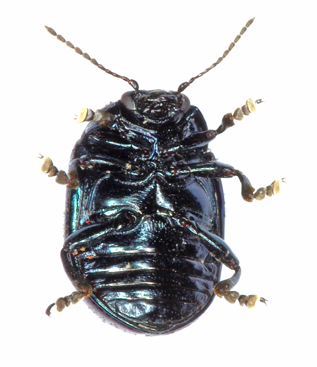 Chrysomelidae trovato due girni fa (13.10.10) ad Arzachena. Misura 6 mm. Purtroppo non si ha l'aiuto della conoscenza della pianta nutrice perchè vagava, insieme a questi Staphylinidae, su un muro. Può essere un esemplare blu, invece che verde o bronzeo come al solito, di Chrysolina viridana (Kuster 1844) ?