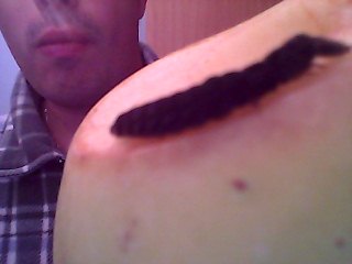 adesso ho preso una mela fresca , l'ho tagliata e fatto un buco e la larva sta girando la dentro sondando le pareti, vediamo.