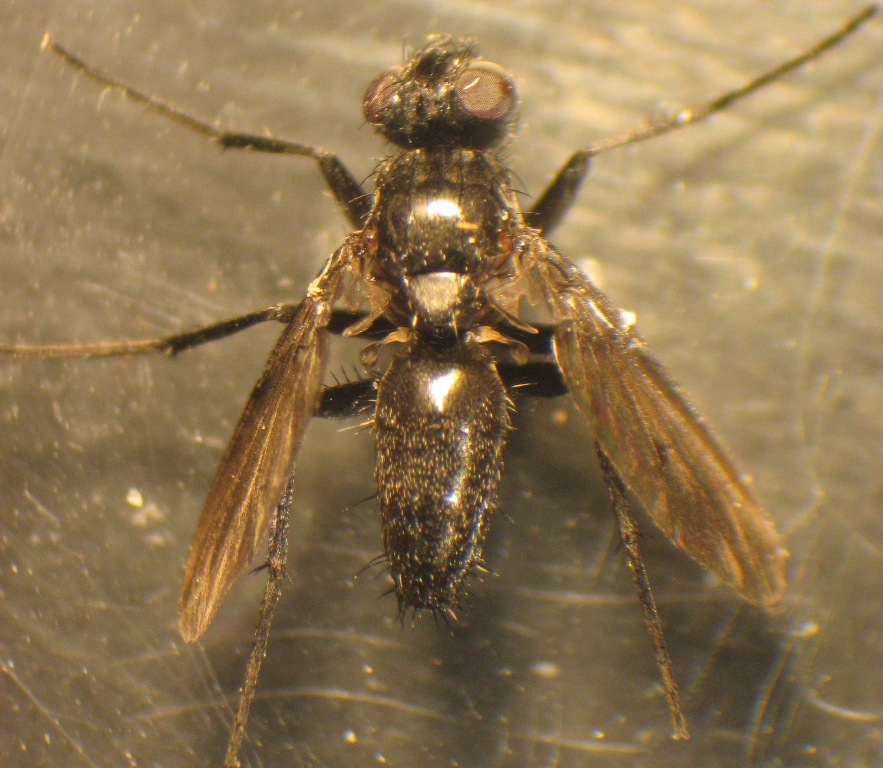 Conosco questa mosca perchè la incontro per quasi tutto l'anno nello stesso sito. Nella mia campagna si posano sulla parete di un deposito in cemento all'ombra di alcuni cipressi, ve ne sono sempre almeno una decina, spontaneamente o se disturbate fanno dei brevi voletti e si riposano. Ero arrivato alla diagnosi perché avevano attirato la mia attenzione. Dalle mie osservazioni posso dedurre che le dimensioni sono molto variabili da 3/4 fino a 7/8 mm., non sono in grado di stabilirne il sesso, a differenza della maggior parte delle mosche credo che i tarsi siano piccoli in entrambi i sessi. Morfologicamente ne incontro di due tipi, spesso compresenti: una con l'ala molto scura ad eccezione di un settore più chiato in sede subapicale posteriore (ipotizzo sia la femmina) ed una seconda con un'ombratura meno intensa e più uniforme (il maschio?). Ora che ho le chiavi di Cerretti conto di catturarle entrambe e lavorarci al binoculare.