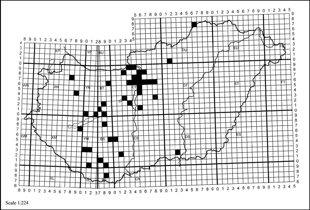 Distribution of Bolbelasmus unicornis in Hungary (Nádai 2006).