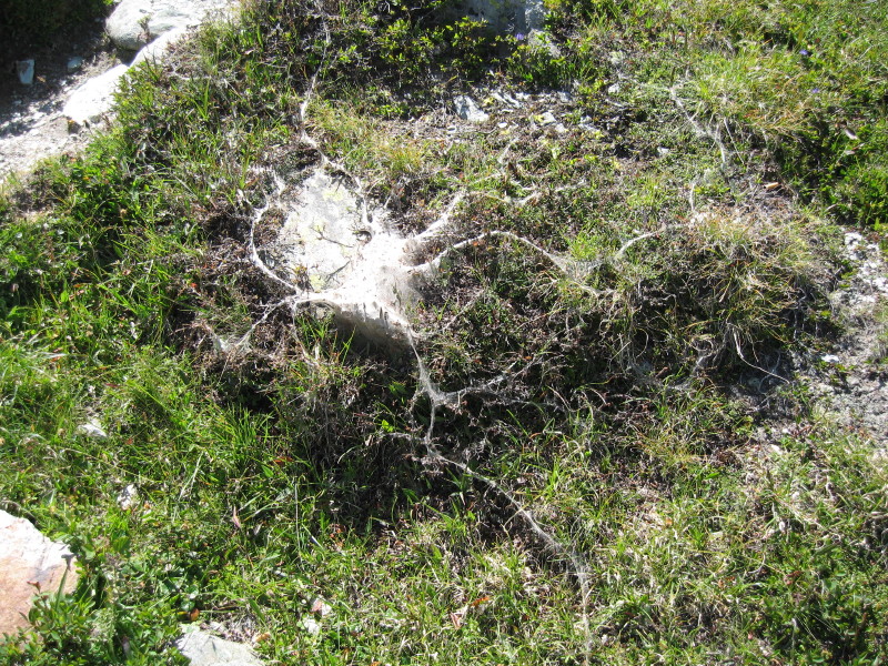 Nido con larve di lepidottero su Rhododendron ferrugineum. Ambiente prateria alpina presso il Rifugio Bignami (2401 m) - Alpi Retiche nel gruppo del Pizzo Bernina (4049 m), Pizzo Palù