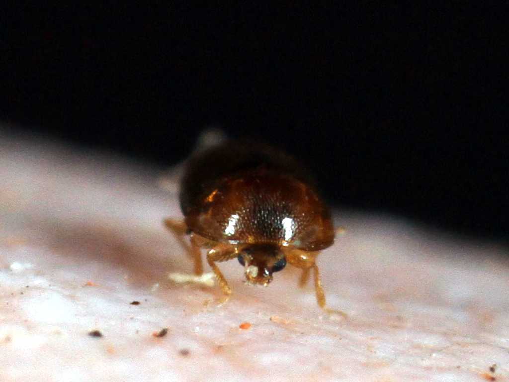 Non avevo finora sentito parlare di Corylophidae; ho subito fatto una ricerca con Google e ci sono decine di siti con foto e informazioni su questi micetofagi. In particolare in www.kerbtier.de ho trovato una foto di un Sericoderus lateralis (Gyllenhal 1827) che se non è proprio quello che ho fotografato io, ci assomiglia tanto. In particolare la linea del margine posteriore del pronoto è la stessa. L'unica cosa che non mi torna è che è sì molto piccolo, ma è comunque decisamente più lungo di un millimetro.
