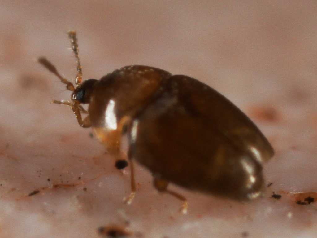 Accidenti, se volevate stupirmi ci siete riusciti. Non avevo finora sentito parlare di Corylophidae; ho subito fatto una ricerca con Google e ci sono decine di siti con foto e informazioni su questi micetofagi. In particolare in www.kerbtier.de ho trovato una foto di un Sericoderus lateralis (Gyllenhal 1827) che se non è proprio quello che ho fotografato io, ci assomiglia tanto. In particolare la linea del margine posteriore del pronoto è la stessa. L'unica cosa che non mi torna è che è sì molto piccolo, ma è comunque decisamente più lungo di un millimetro. Grazie a tutti.